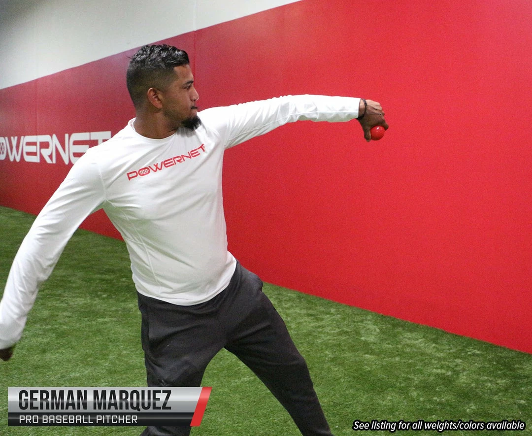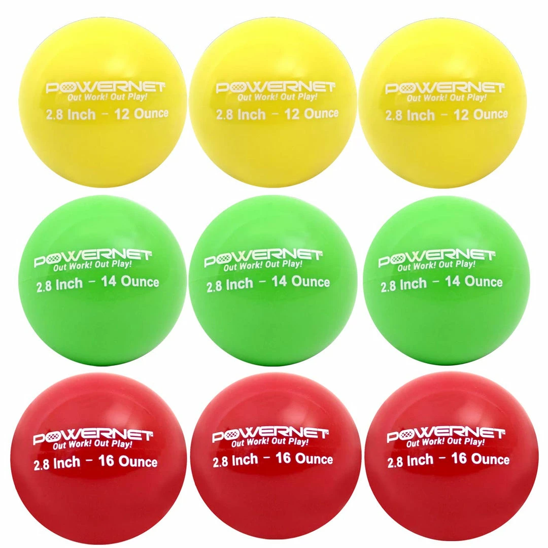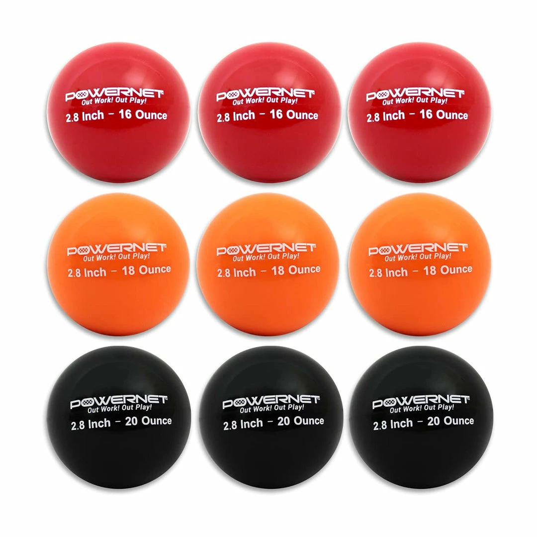 PowerNet Weighted Hitting and Batting Training Balls are created to help develop hitters to drive the barrel through the ball with complete follow-through. The ball weight assists in muscle memory development and provides instant feedback on every contact swing. Instantly know square hits versus mis-hits. The ball carries a limited flight allowing full swings in limited space and without hitting nets. As the hitter gains strength and their swing begins to easily accelerate through one weight, they can advance to the next weight class. Also great for slow, warm-up tosses before throwing a real baseball or softball. Sold in a Pack of (9) Balls: Ball Size: 2.8″