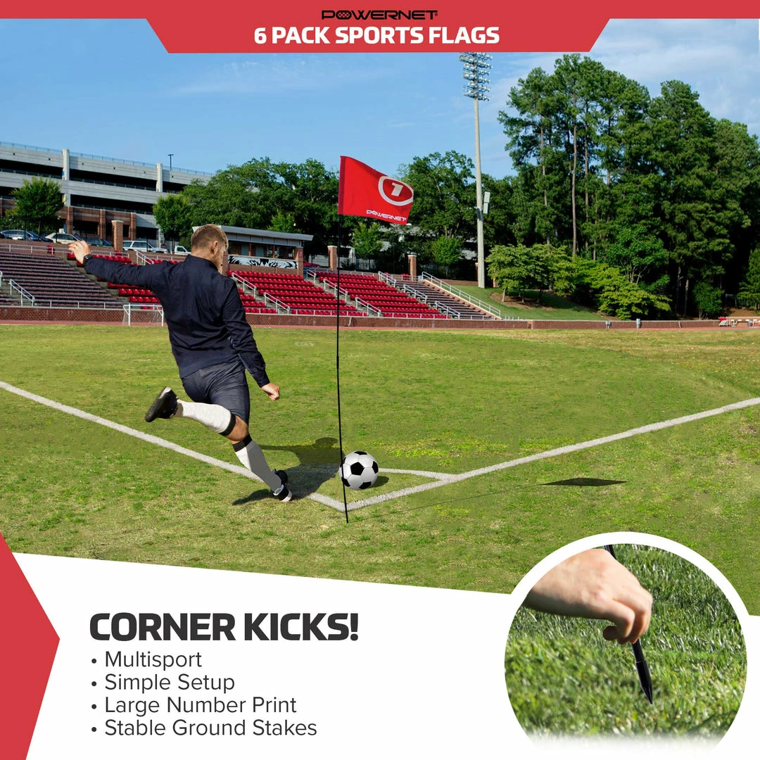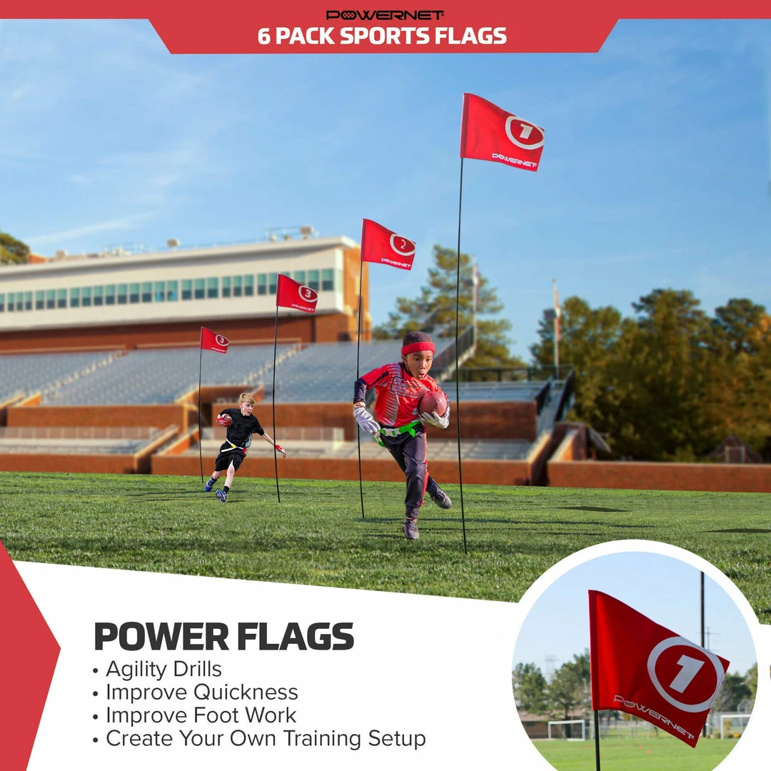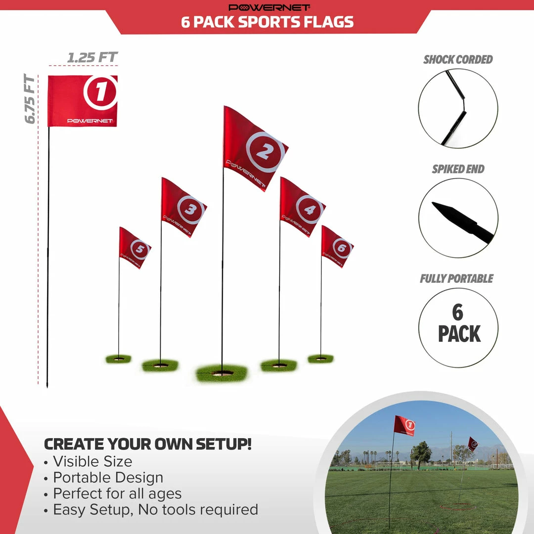 The PowerNet 6 Pack Sports Flags are perfect for golf, soccer, football and other sports! Coaches can easily address the field to make it easier to run drills with their teams. The height, number and color are designed to be visible from anywhere on the field.