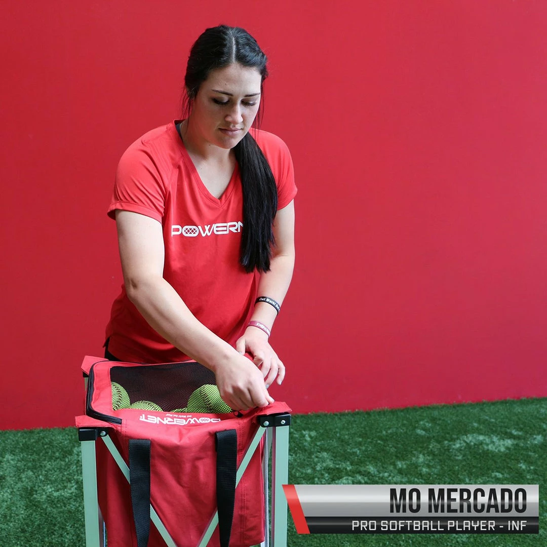 The PowerNet Wheeled Ball Cart is a rolling caddy designed to replace the 6 gallon bucket of balls that just don’t cut it. The zippered pouch holds your balls and is removable for easy transport while the base folds up neatly. The caddy’s height allows for easy ball access without the constant bending. No more need for separate six gallon buckets and bucket lifters. Can also be used on the tennis court. Holds 130-150 tennis balls.
