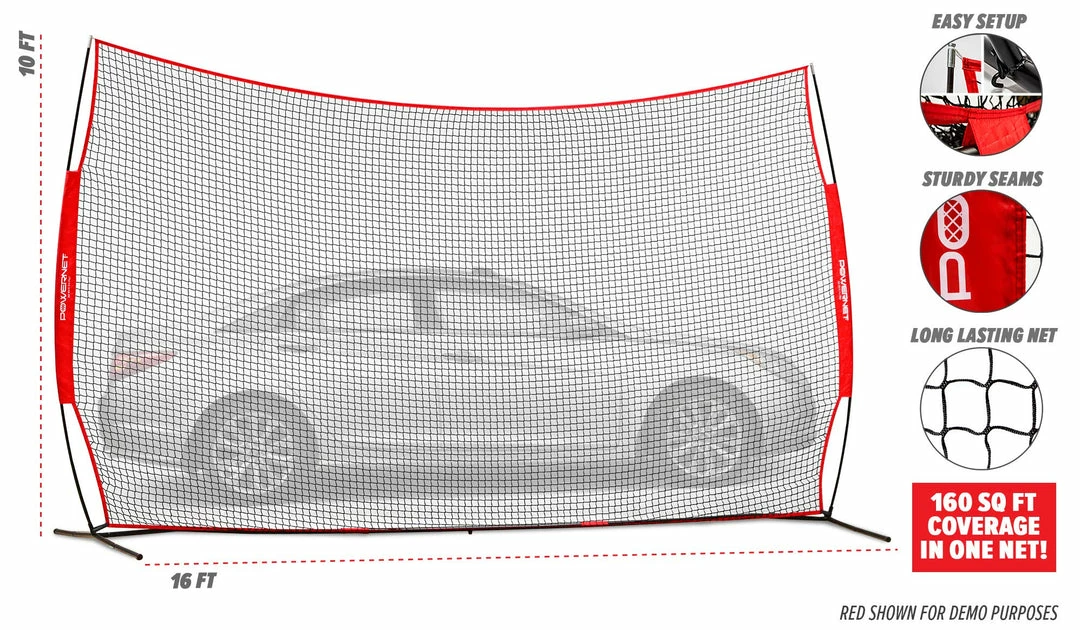 - 16 BY 10 BARRIER NET; This instant portable protection screen or backstop is great for any sport; Large bow style frame holds net secure and provides a large hitting surface or protective area; Perfect for baseball lacrosse basketball soccer field hockey softball and street hockey