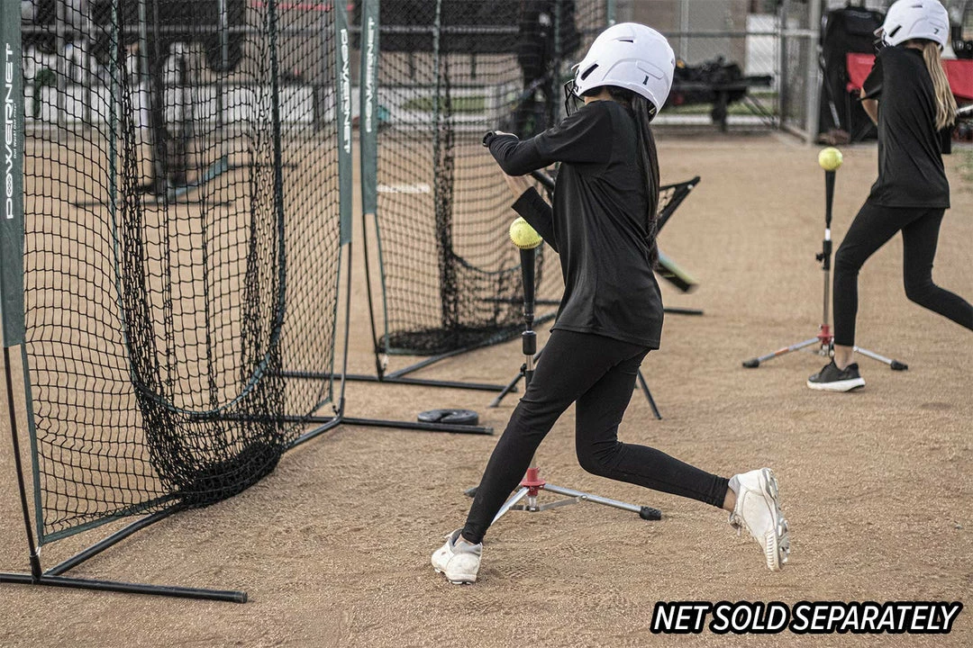 - EXTRA WIDE BASE; 26” leg span with rubber legs provide grip on any surface indoor or out; Works great on the field and at indoor training facilities and batting cages