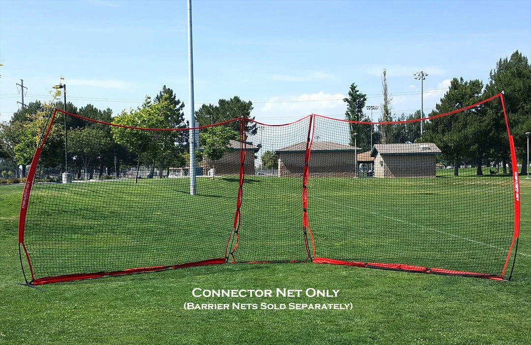 Join two 12X9 Barrier Nets for increased protection and safety with our Connector Net. Extends 4.5 feet of coverage in-between a system of two Barrier Nets. Product is lightweight and portable and perfect for in-home training or taking to the ball park. Set up is a breeze.