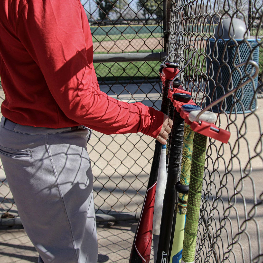 The PowerNet Baseball Softball Bat Fence Rack keeps bats off the ground ready to grab for the next batter. Great for teams. Foldable design can be stashed in any equipment bag and transported to the next game or event.