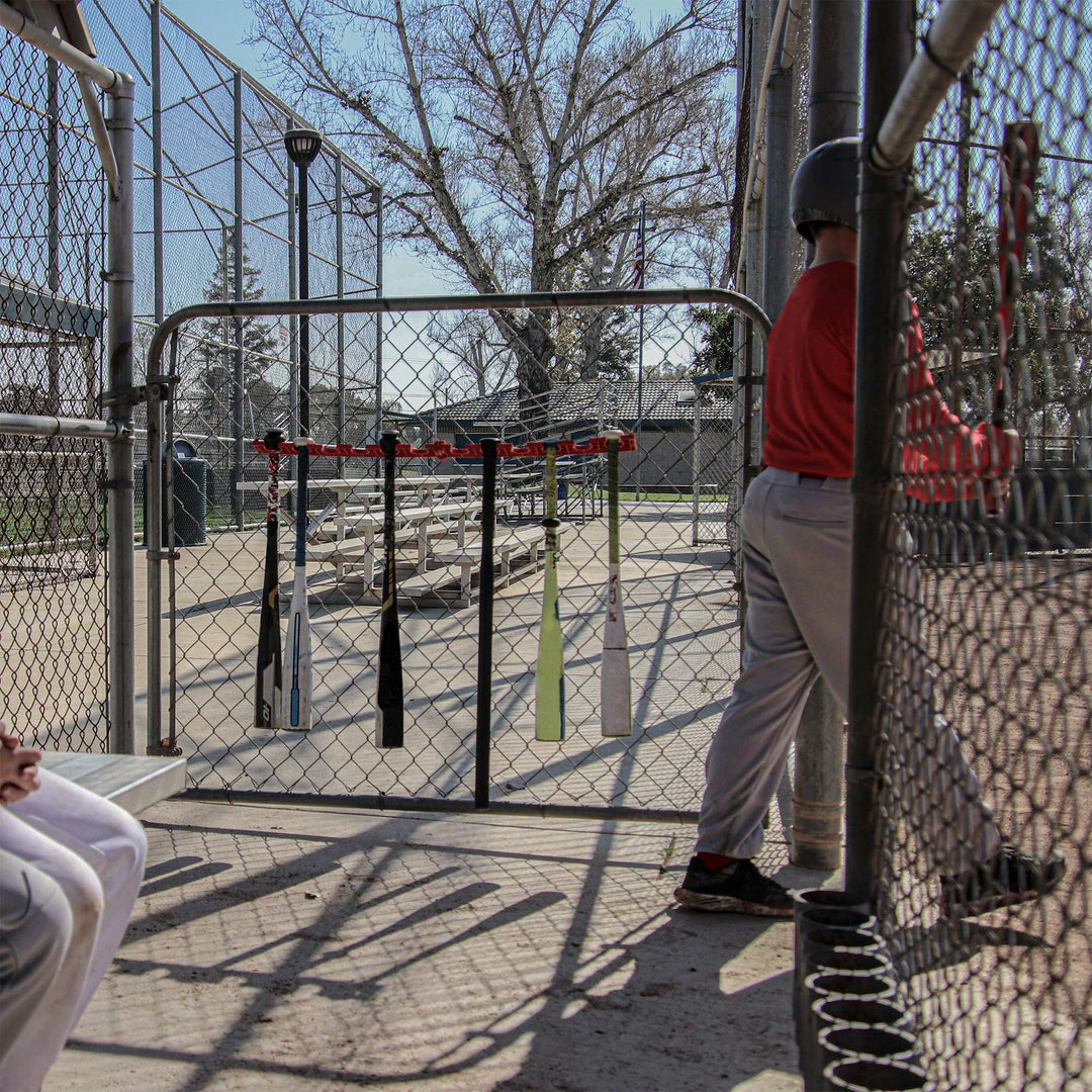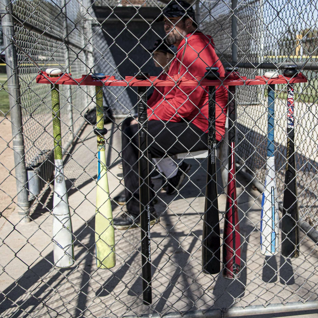 - DUGOUT ORGANIZER; Bat holder great for any baseball or softball team; Keeps bats off the ground and helps protect them from getting dented from other metal bat racks; Makes a great addition to any coach or manager’s team equipment