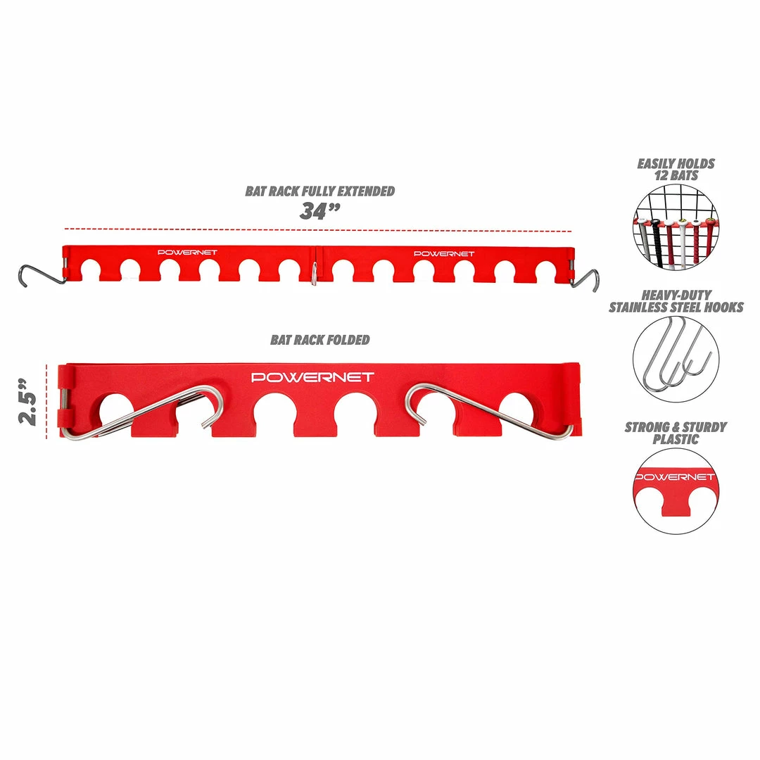 - PORTABLE; Fold up design allows the PowerNet Bat Rack to be taken anywhere; Small enough to put into any gear bag