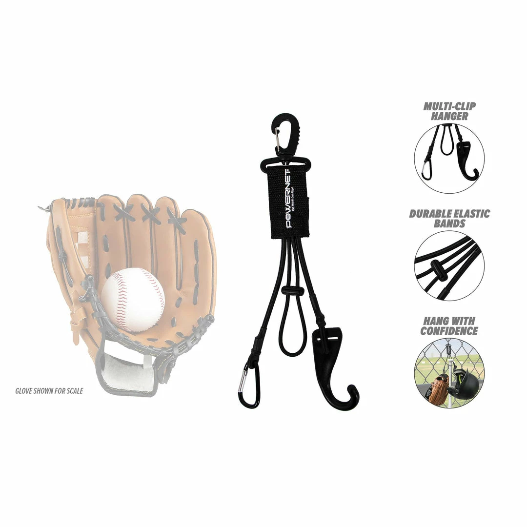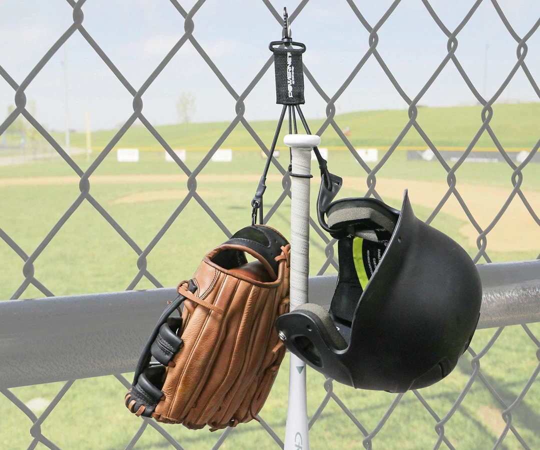 PowerNet Baseball Softball Hang All Gear Hanger is perfect for keeping valuable equipment off the ground. When a player’s name is called, they can quickly access their gear from one place. The PowerNet Gear Hanger features a main clip for attaching to any fence and 3 gear clips. Each one is a little different to allow attachment of almost any gear. Works with gloves, bats, helmets, hats, bags and more.