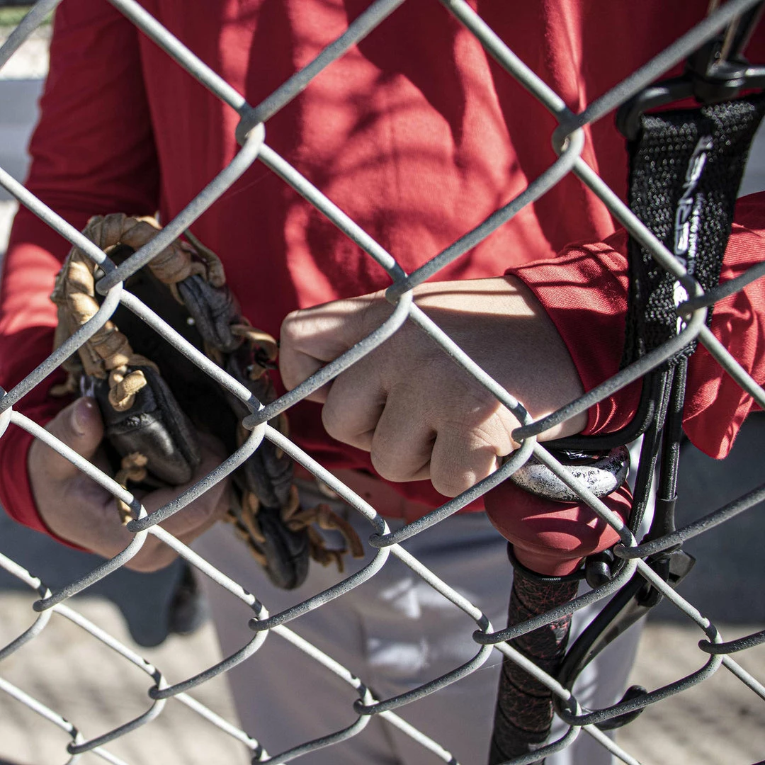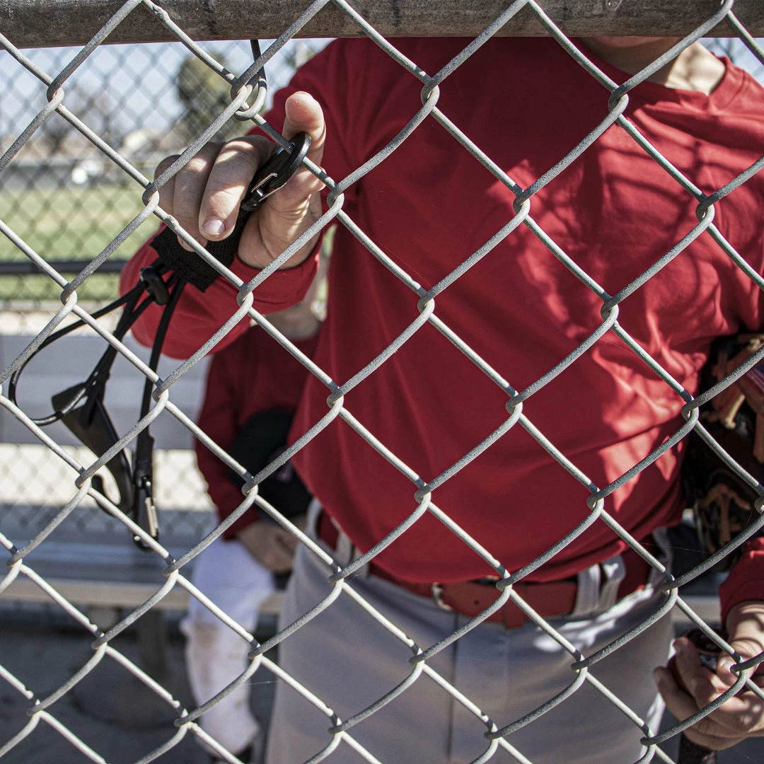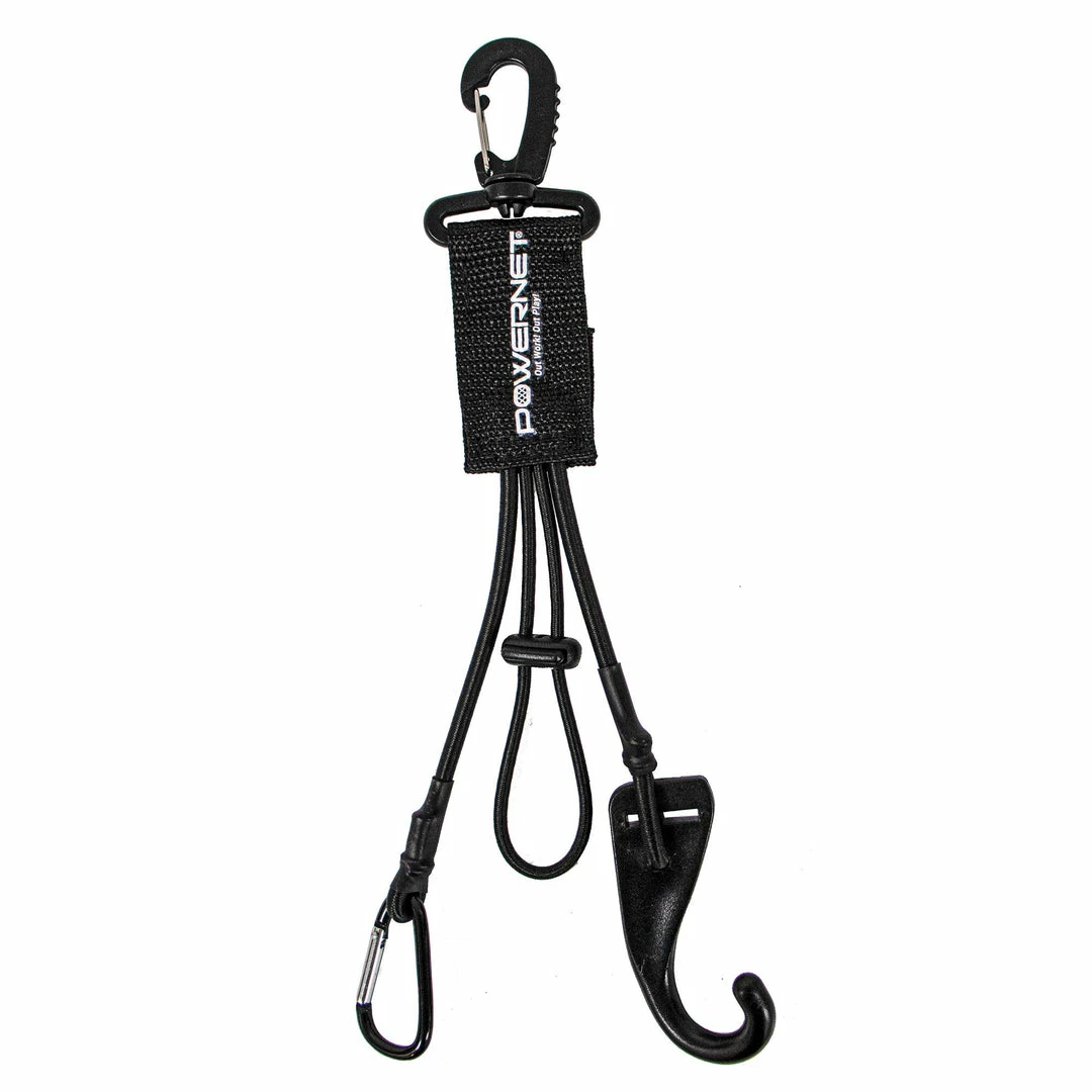 - SECURE; Each hook securely latches to your equipment; The bat loop features a push-button tightening cinch