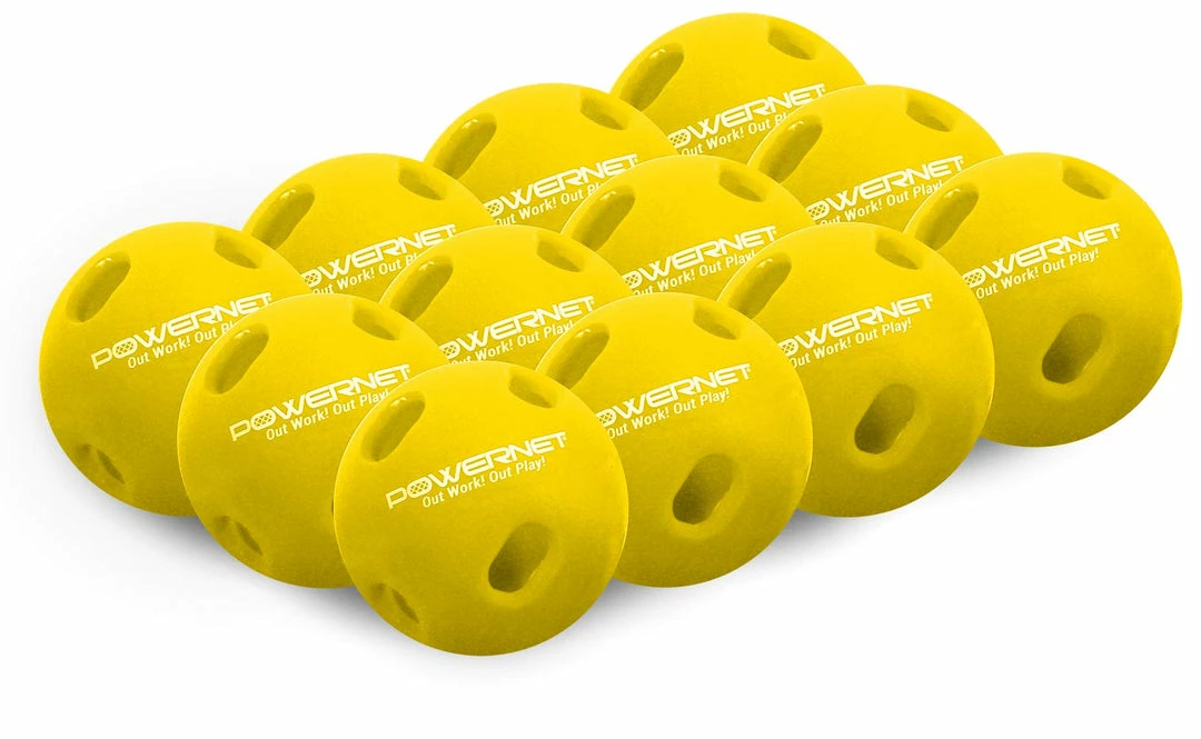 - LIMITED FLIGHT; These vibrant yellow crushers are ideal for eye focus coordination; Perfect for allowing you to fine tune your swing accuracy, speed and power; The built in holes minimize flight, these balls were designed to act true to flight path but minimize distance when hit