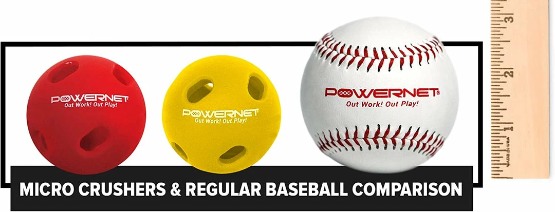 - EYE-HAND COORDINATION; The smaller size of the Micro Crushers force the eyes to work better; Try pairing them with a PowerNet Sweet Spot Bat!