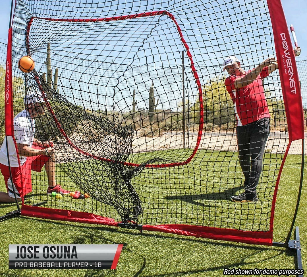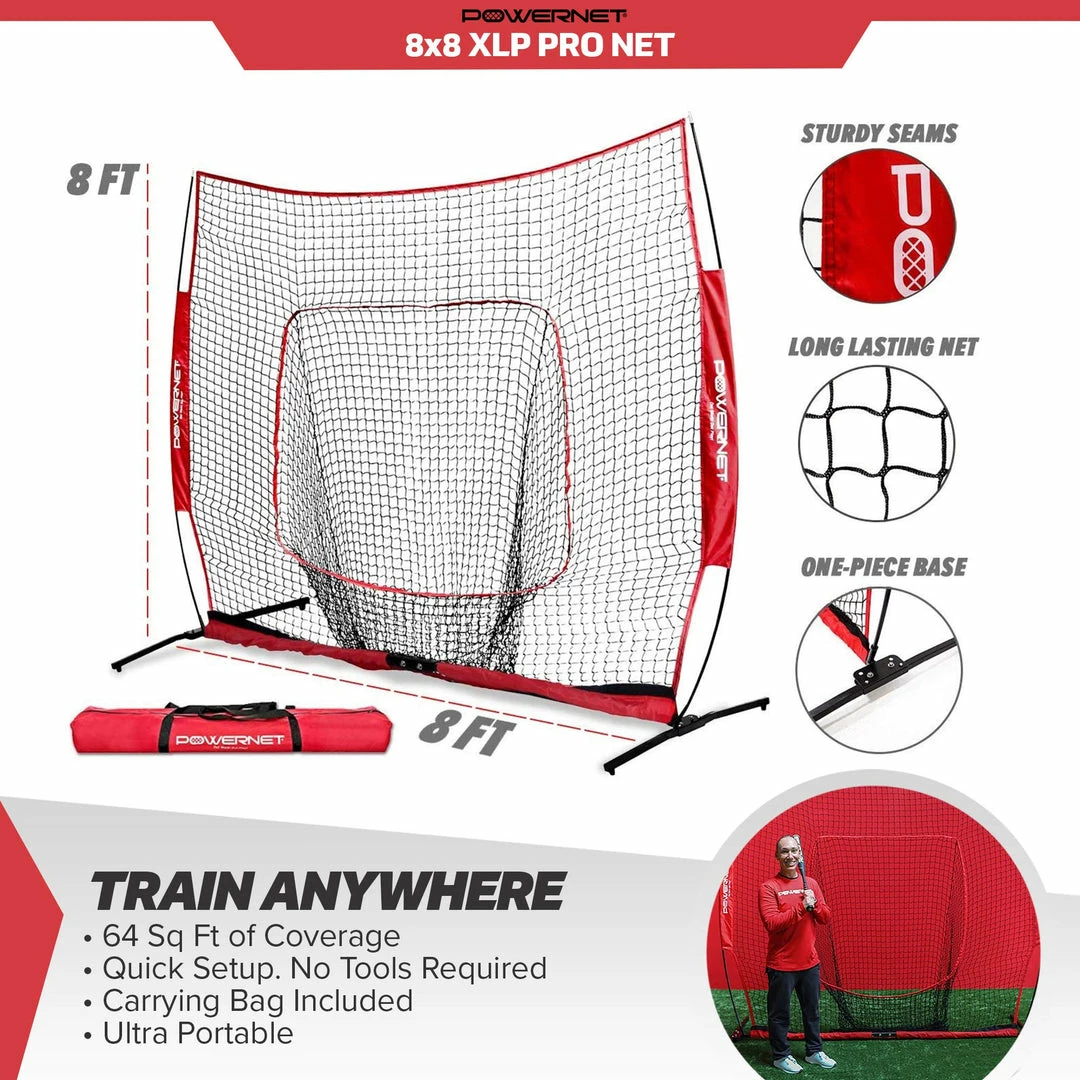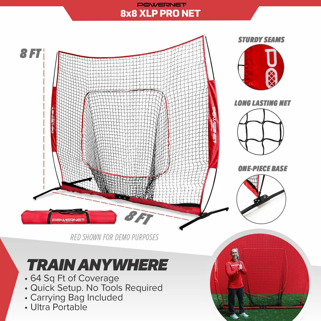 The PowerNet XLP PRO Baseball and Softball Practice Hitting Net is an advanced training tool for elite athletes. Our system stands 8 feet (H) and 8 feet (W) creating a huge backstop for a variety of practice drills including pitching, soft-toss, and tee work. It is the largest hitting net on the market. The bow frame is designed to flex with each swing — catching both baseballs and softballs in its extra wide mouth. The PowerNet XLP PRO Net is built with a Pro-Grade base keeping it firmly planted, hit after hit. The one-piece frame makes setup a snap. Each system is completely portable and perfect for in-home or on the field training. Tee, ball caddy and other accessories sold separately.