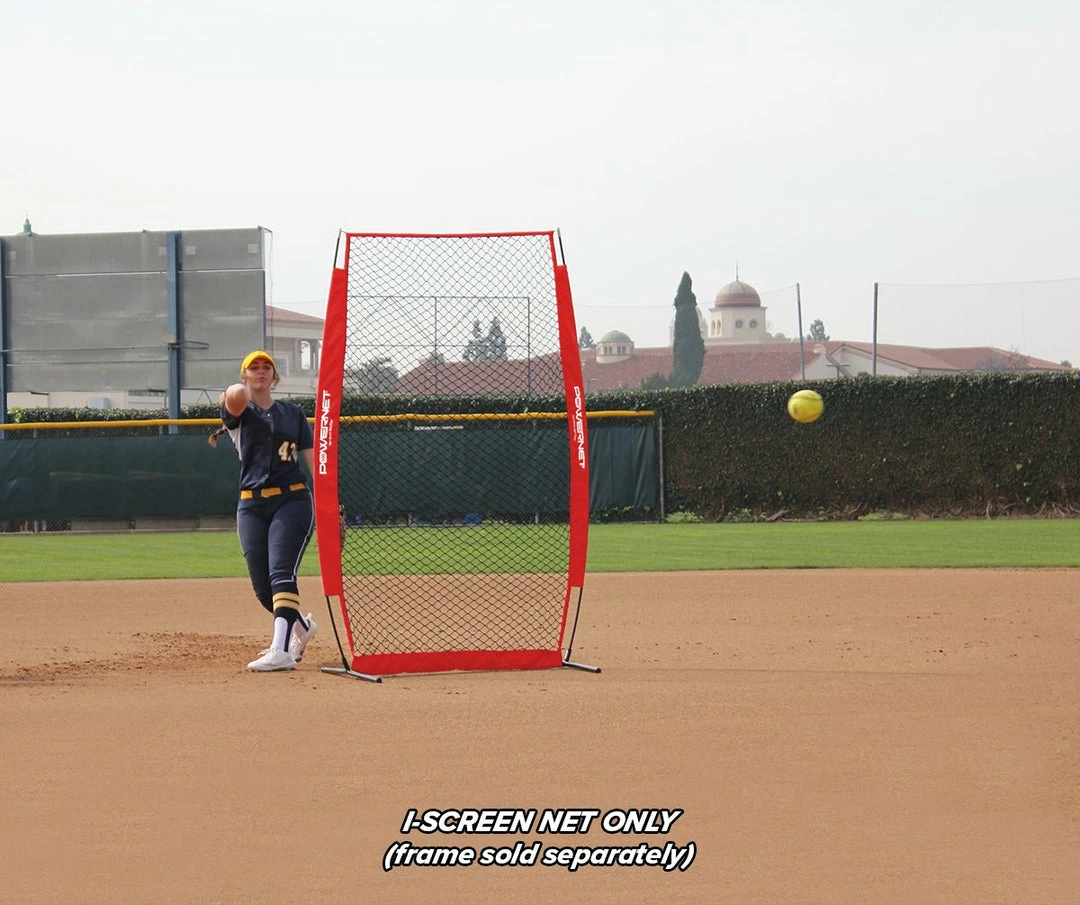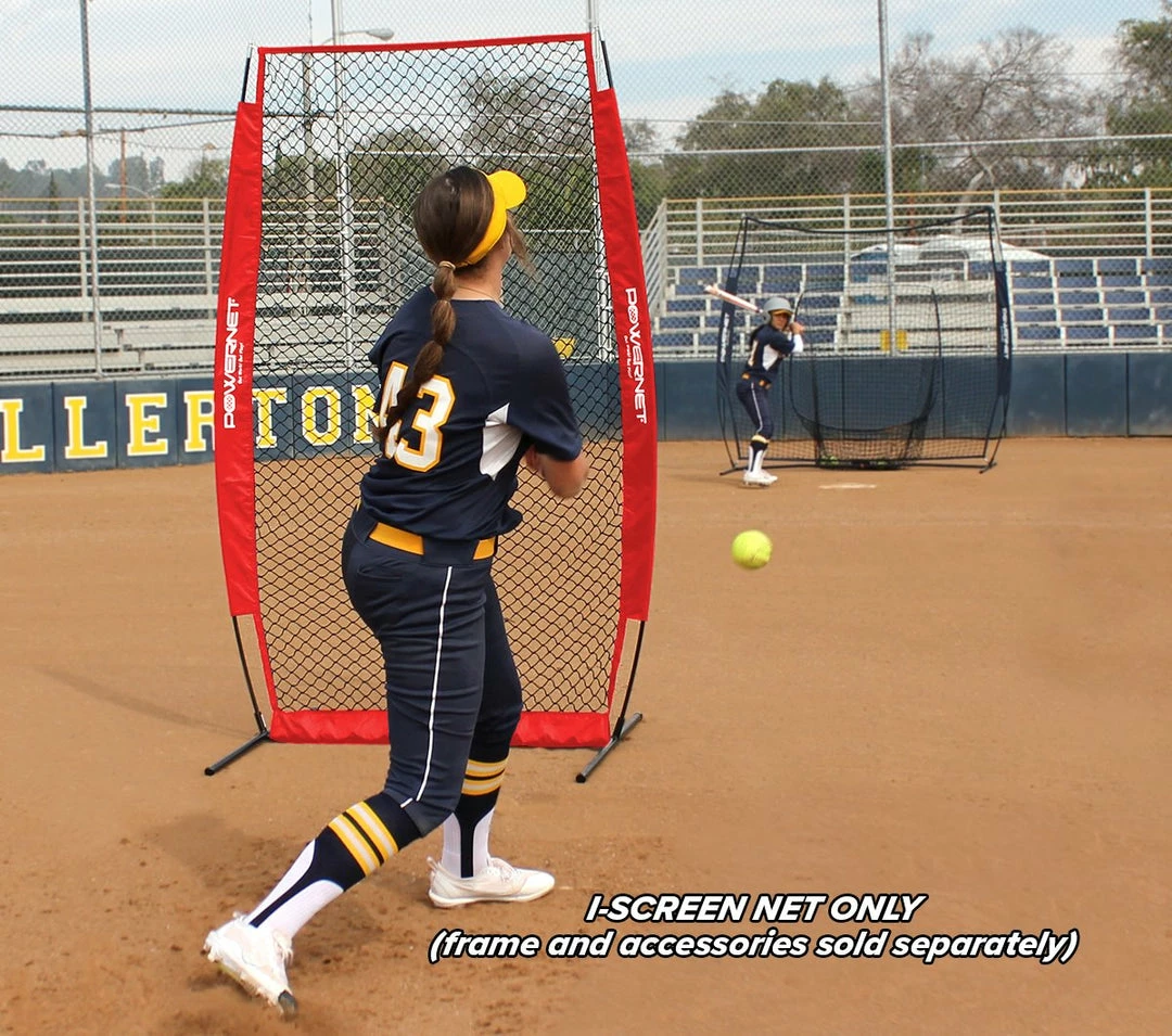 - 4’x7′ I-SCREEN REPLACEMENT NET; Net only; Fits PowerNet 7ft by 7ft training net system frame (without center bar) or the 4×7 infielder or I-Screen frame; 28 Sqft of hitting and screen protection