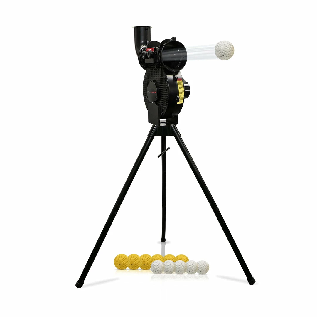 - VARIABLE SPEED; Four settings simulate speeds from 40 to 90 MPH at 25 feet; Players can get work on their swing without a live pitcher; Perfect for coaches and parents running batting practive on the field or at home; Sturdy tripod base included