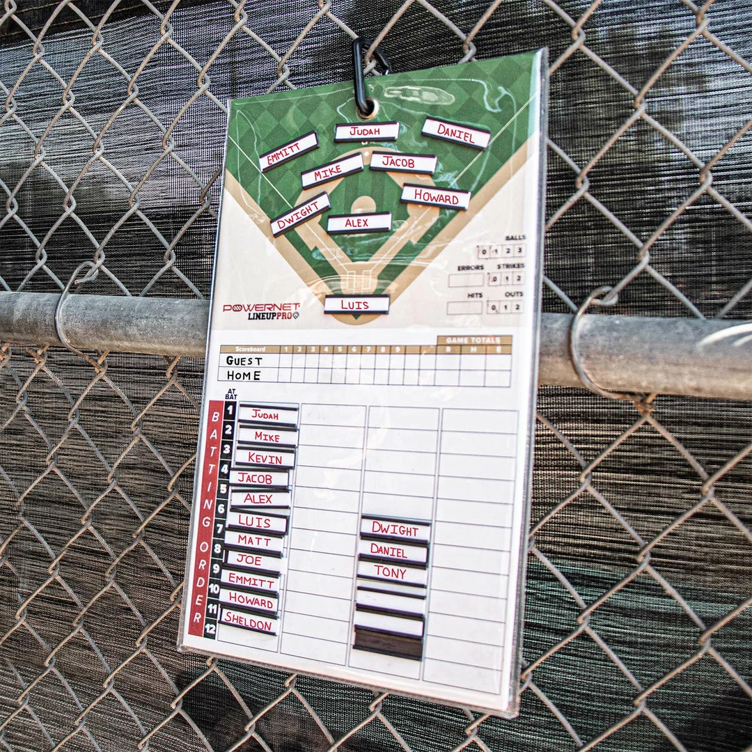 The PowerNet Baseball Magnetic Lineup Coaching Board is double sided to provide an effective training tool for experienced and non-experienced coaches. The weatherproof sealed design ensures coaches can stay organized without worrying about their board getting weather damage. The baseball softball diamond print allows players and coaches to visualize the positions and communicate effectively to eliminate chances for errors on the field.