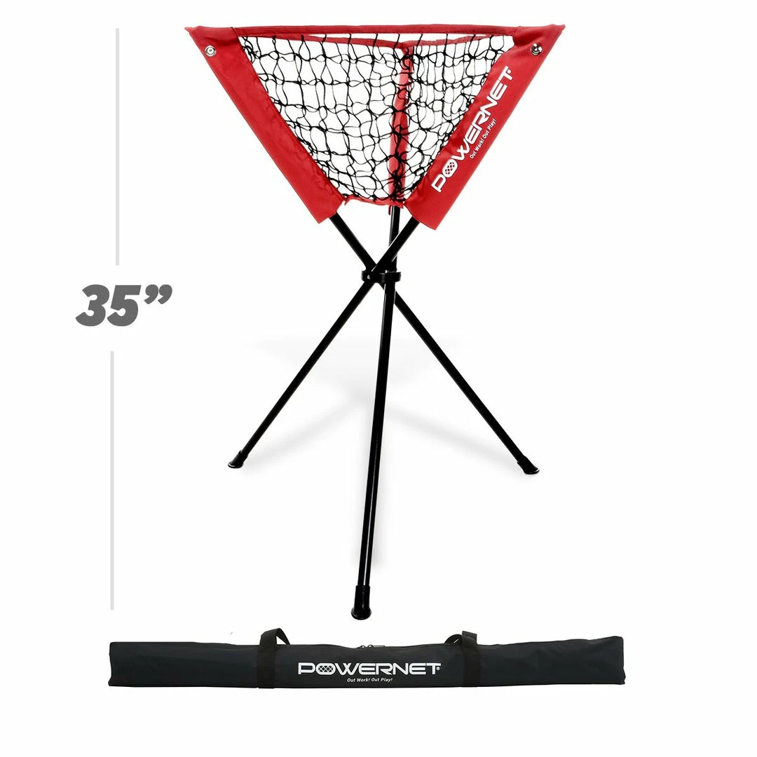 The PowerNet Batting Practice Caddy is a completely portable and lightweight ball caddy designed to replace the gallon of balls used for your Baseball Softball Drills. The 35″ tall design allows for easy ball access without the constant bending. We have included a convenient carry bag along with this purchase. Estimated capacity is 50-60 baseballs, and 25-30 softballs.