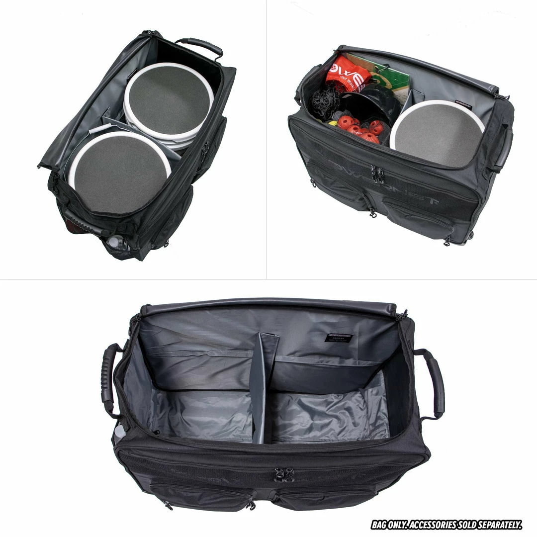 - DUAL MAIN COMPARTMENT; The divided area can fit up to two baseball buckets or a combination of coaching equipment including batting helmets and gloves
