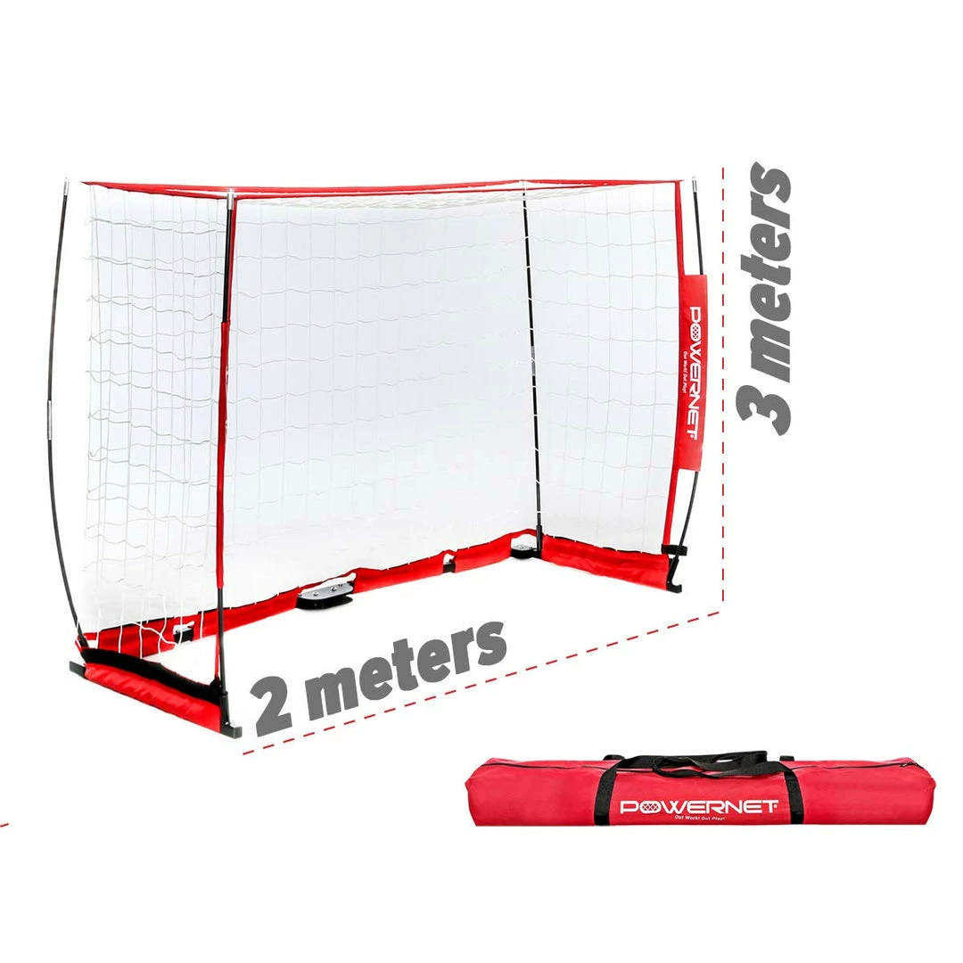 Instant portable 3 meters by 2 meters futsal goal (1 Net + 1 Carrying Bag with shoulder straps). Easy setup in minutes, no tools required, game ready. Great for Outdoor and Indoor use. You can train, play or practice anywhere. Firm weighted steel base ensures the goal stays upright even with the hardest shot. Perfect portable goal for teams because they can setup and move these lightweight nets on their own. Includes: (1) Futsal Net and (1) Carrying Bag with Shoulder Straps.