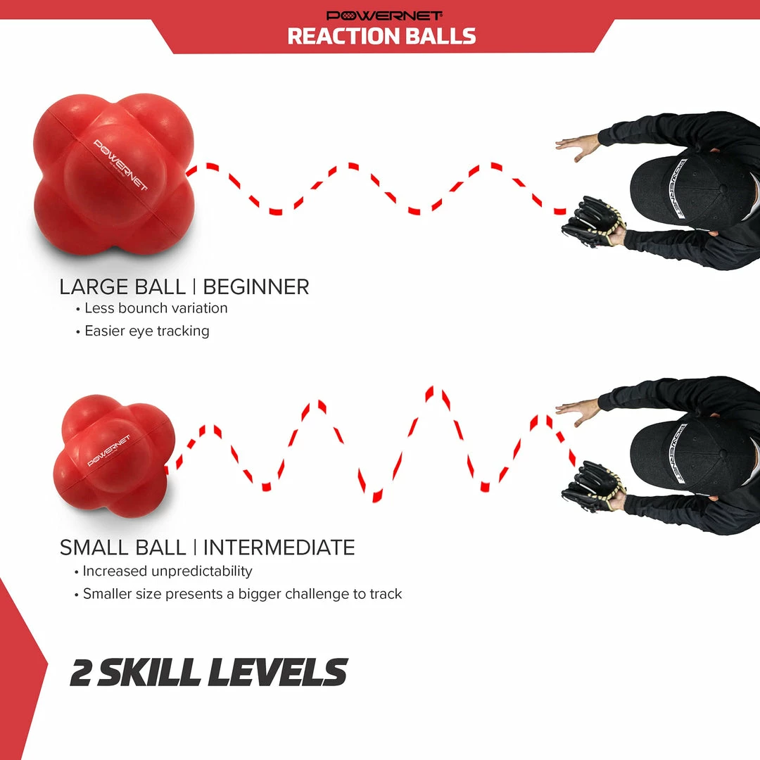- REFLEX BUILDER AND INSTAND FEEDBACK; The six sided PowerNet Reaction Balls improve your reflexes and footwork with random bounces; Practice catching bad hops; Pick up the pace and develop reaction skills to track unexpected flight paths; Expect the unexpected