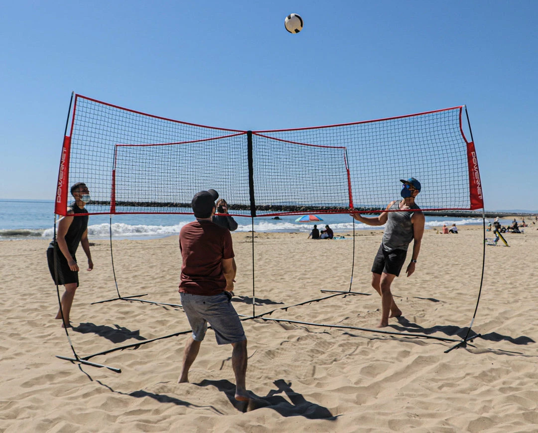 This fun, new game is sure to be the hit of your outdoor gathering! The PowerNet Four-Square Volleyball Game combines two sports to make for one awesome time. Includes net, boundaries, lines, stakes, volleyball, pump and carry bag.
